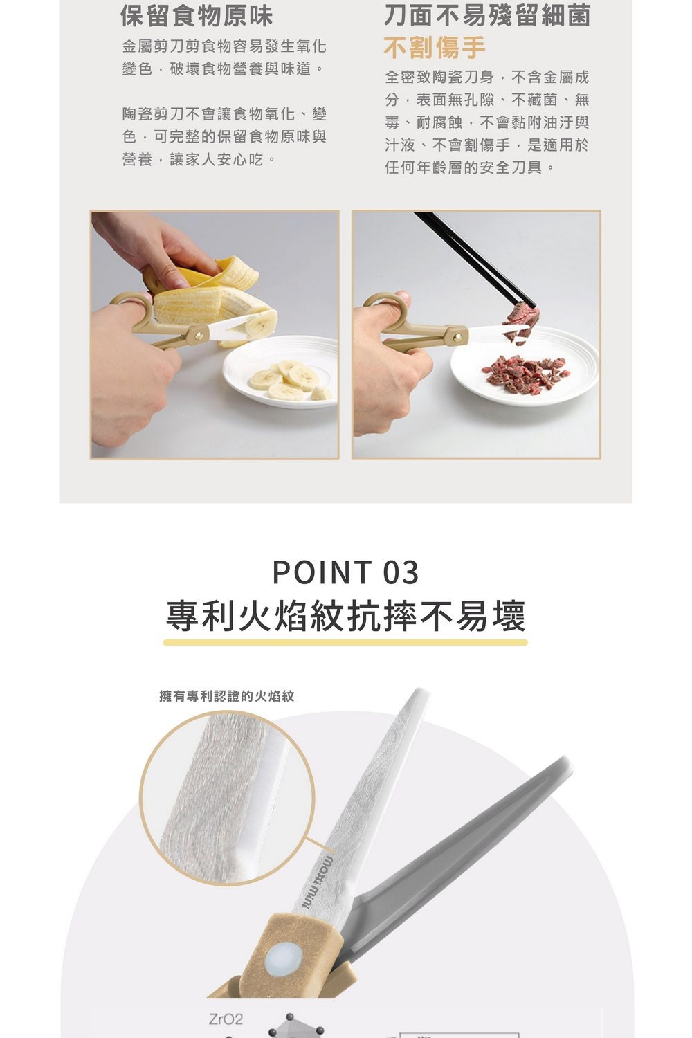 ★ 陶瓷剪刀不生鏽腐蝕,刀面不易殘留細菌、不割傷手