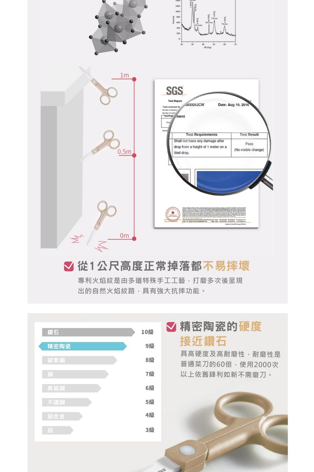 ★ 專利火焰紋抗摔,耐磨性高不需磨刀