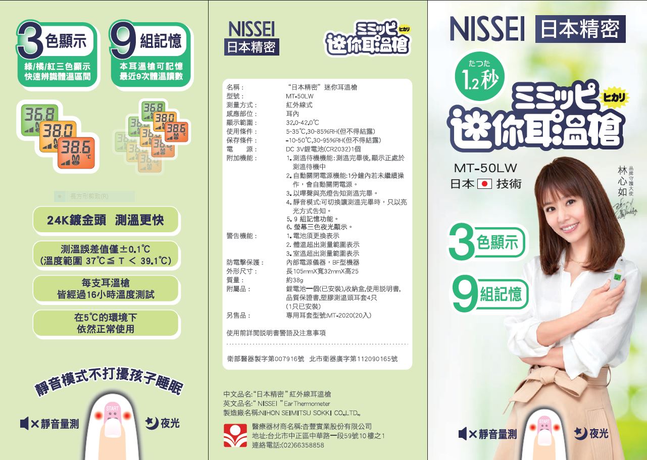日本精密 NISSEI 迷你耳溫槍 MT-50LW 台灣製 升級版 98469
