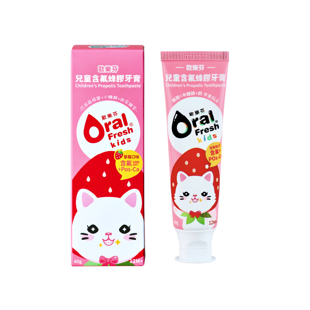 OralFresh-Kids 歐樂芬 兒童含氟蜂膠牙膏60g 草莓口味(兒童含氟牙膏)