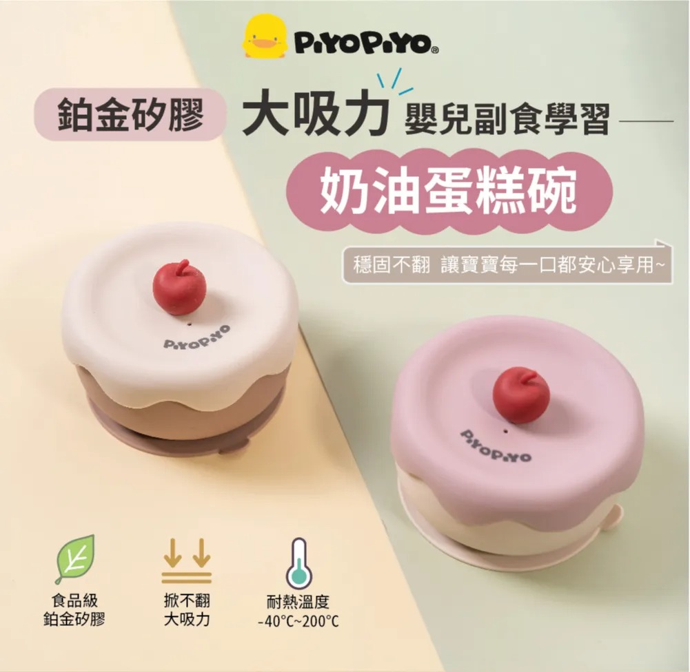 ​黃色小鴨 鉑金矽膠系列"大吸力"嬰兒副食學習蛋糕碗+蓋 200ml (白蓋咖碗)