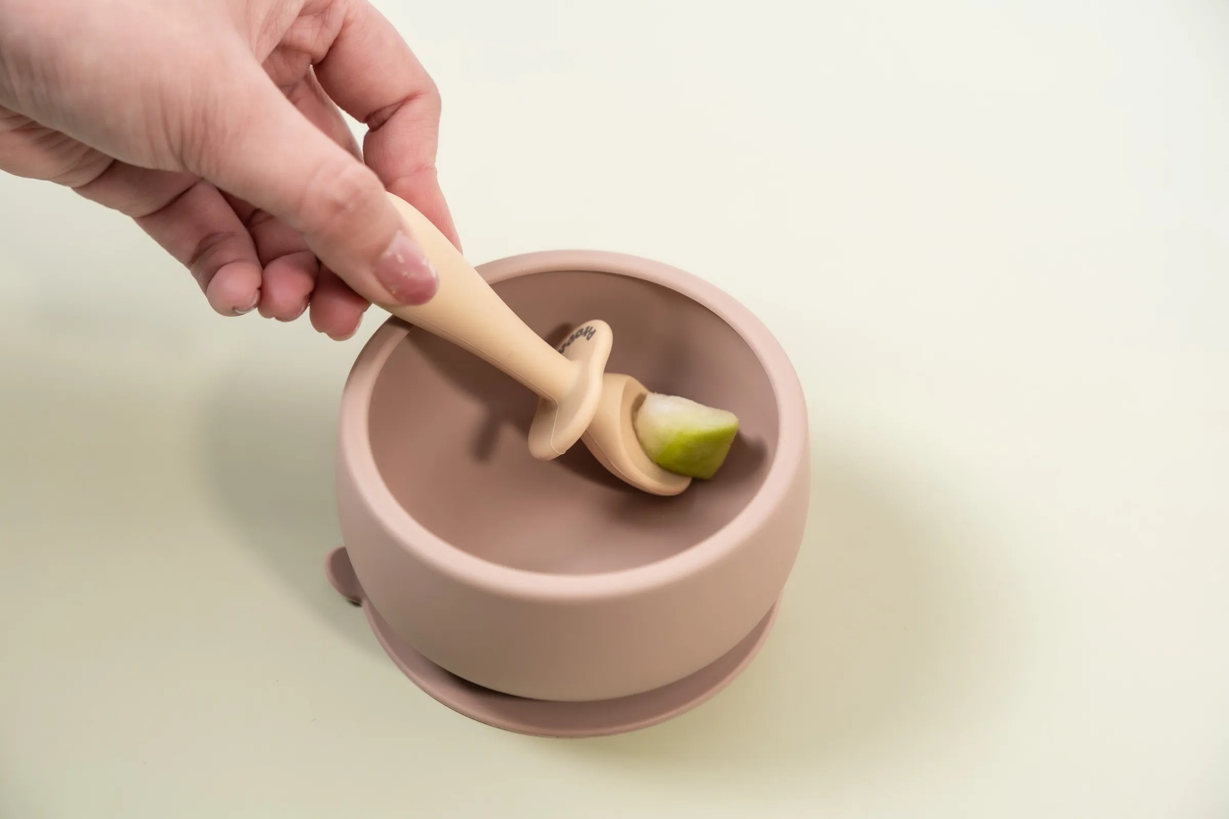 1.    碗型貼合寶寶小手大小,讓寶寶吃飯時更好扶。