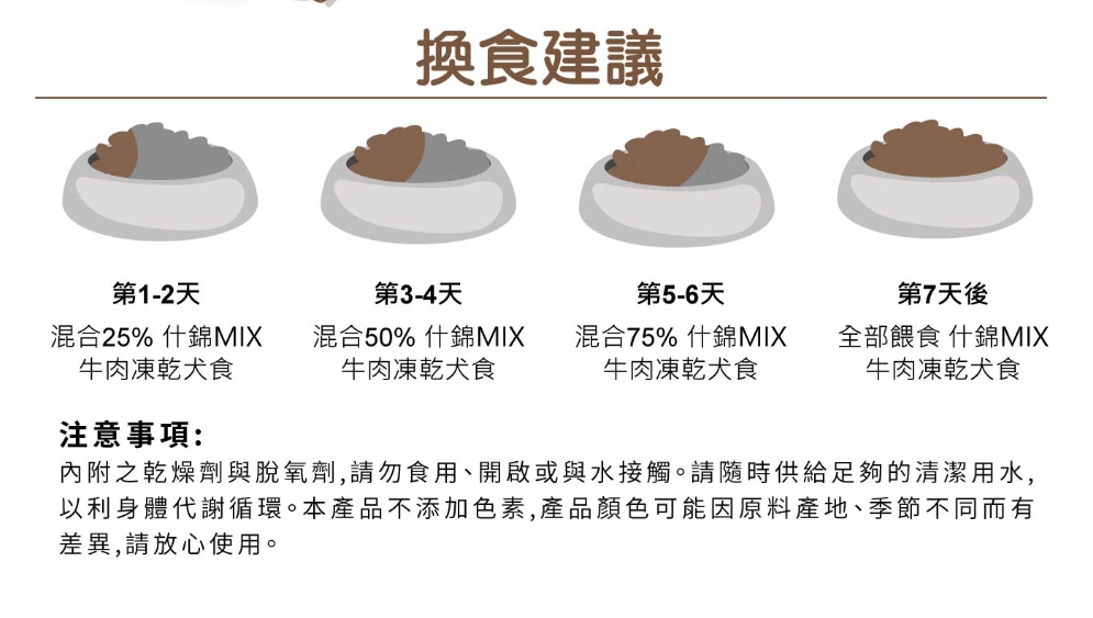 ★原料成份 / 營養標示 / 產地效期 / 換食建議 / 注意事項 等資訊 ,請詳見包裝說明。