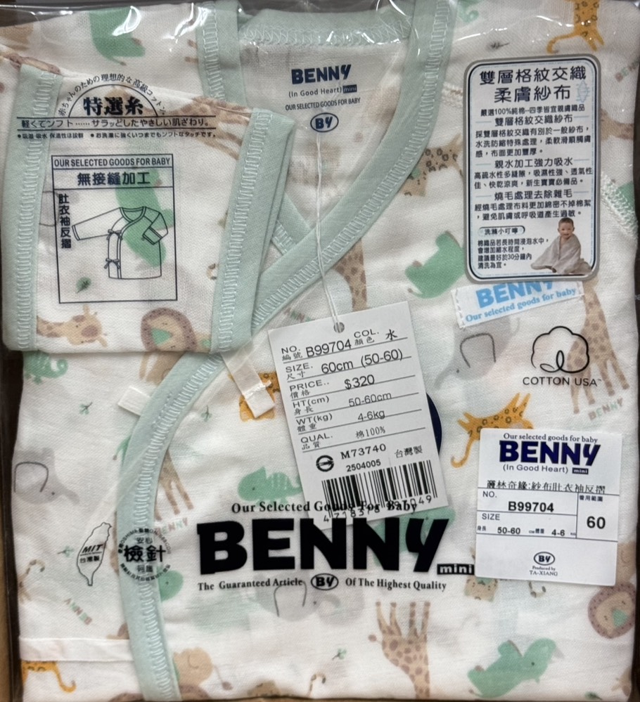 BENNY 紗布肚衣式包屁袖反摺 60CM【叢林奇緣】B99704 (藍邊)