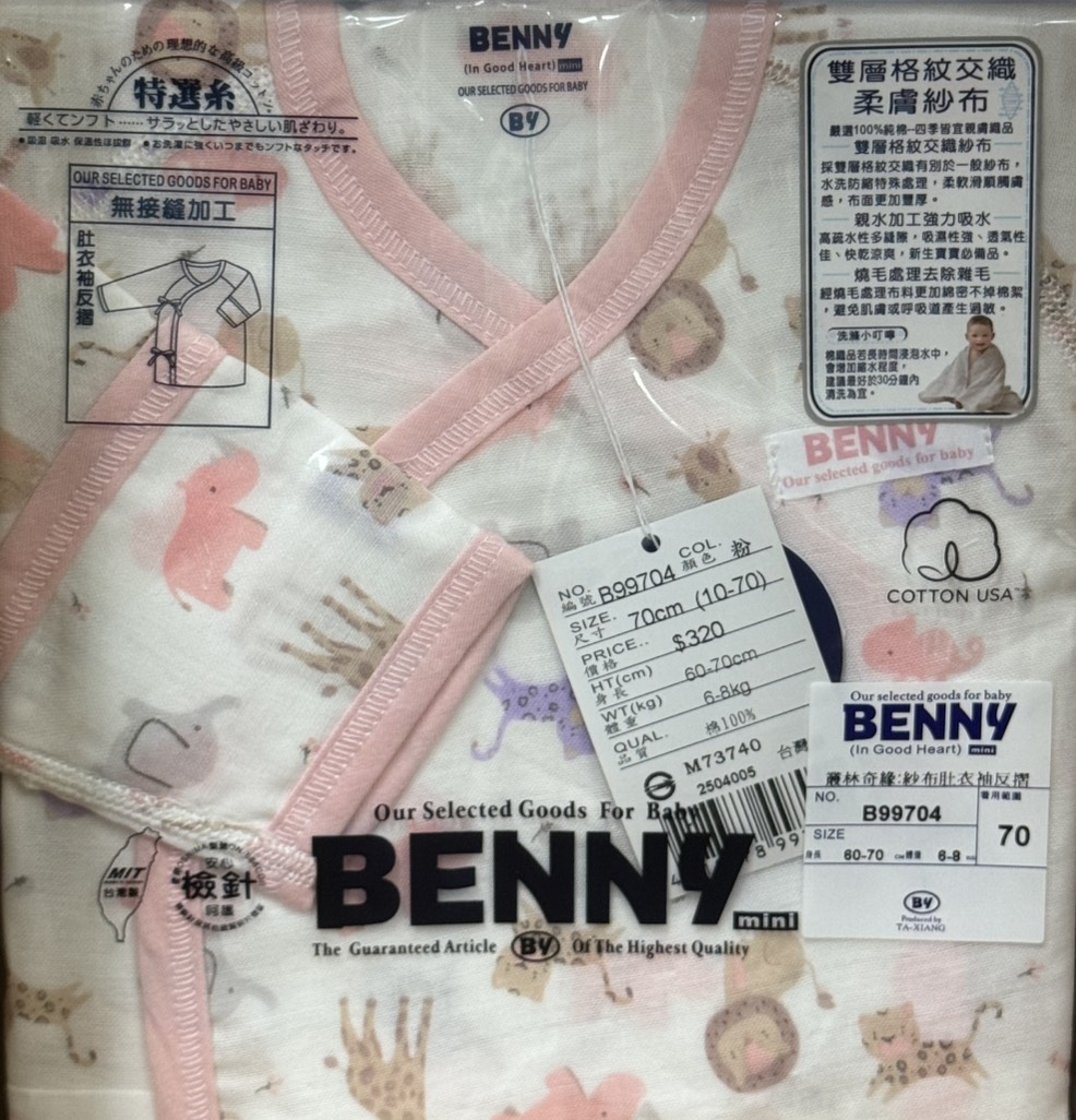 BENNY 紗布肚衣式包屁袖反摺 70CM【叢林奇緣】B99704 (粉邊)