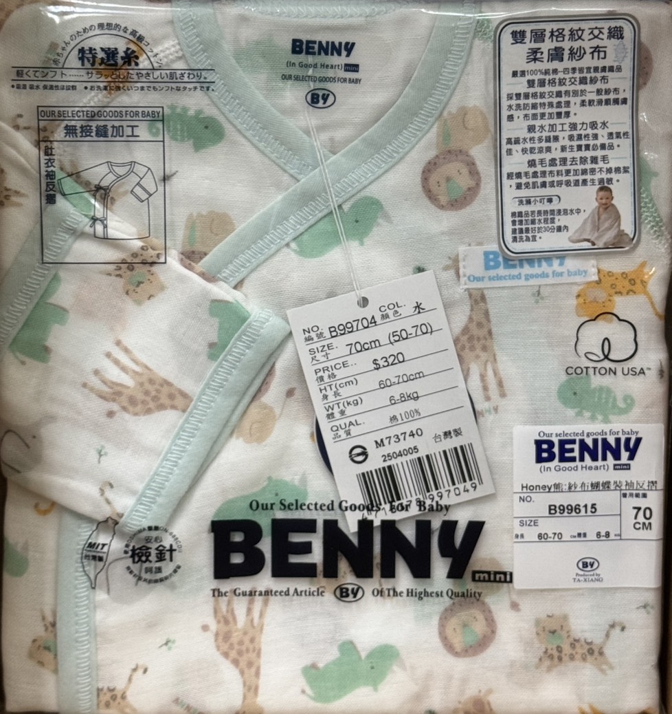 BENNY 紗布肚衣式包屁袖反摺 70CM【叢林奇緣】B99704 (藍邊)