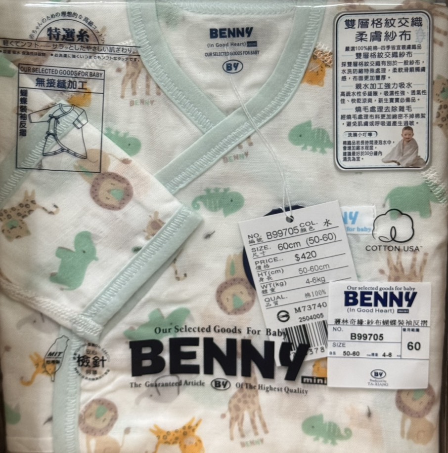 Benny 紗布蝴蝶裝(袖反摺) 60cm【叢林奇緣】 B99705 (藍邊)