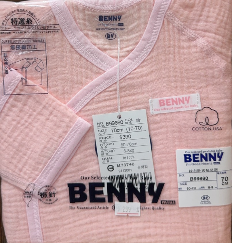 BENNY 紗布肚衣式包屁袖反摺 皺皺紗 70cm B99660 (粉)