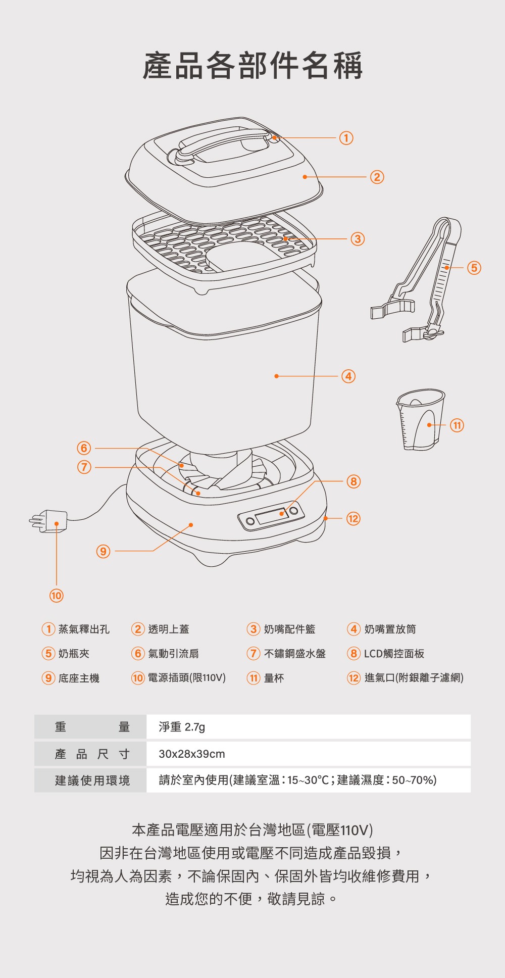 ※LCD大螢幕, 狀態顯示清晰, 消毒烘乾一目了然