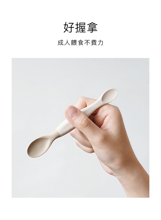 3. 符合拿握手勢,成人餵食不費力。