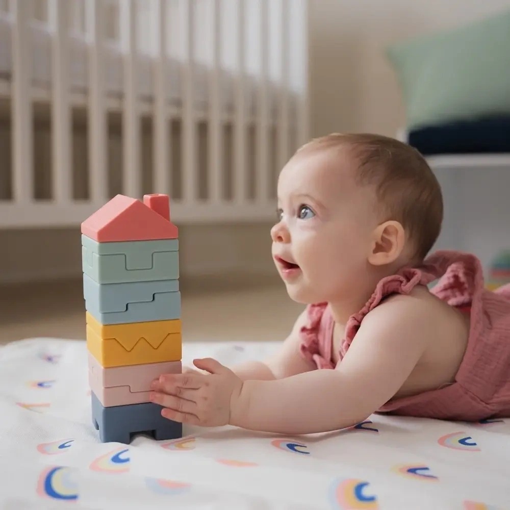 建造積木組是專門為寶寶設計的理想玩具,喚醒他們的好奇心並刺激創意。這套積木有多種形狀,適合小手抓握。建造積木特別設計讓寶寶很好拿取,且觸感柔軟,協助發展小肌肉與手眼協調。積木可以堆疊成為塔或是房子,給予寶寶無限的玩樂可能性。