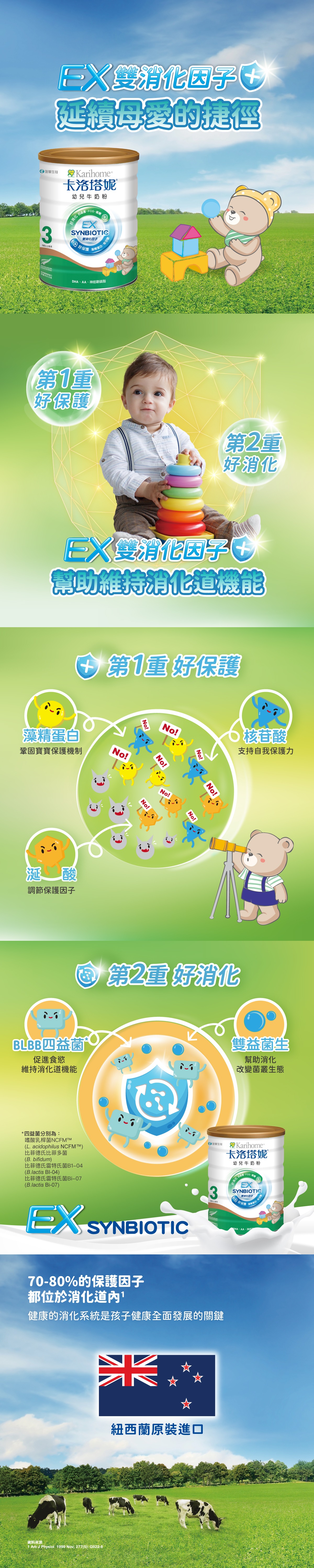 EX雙消化因子 - 四益菌好消化;藻精蛋白、核苷酸好保護,多種關鍵營養幫助寶寶調整體質。