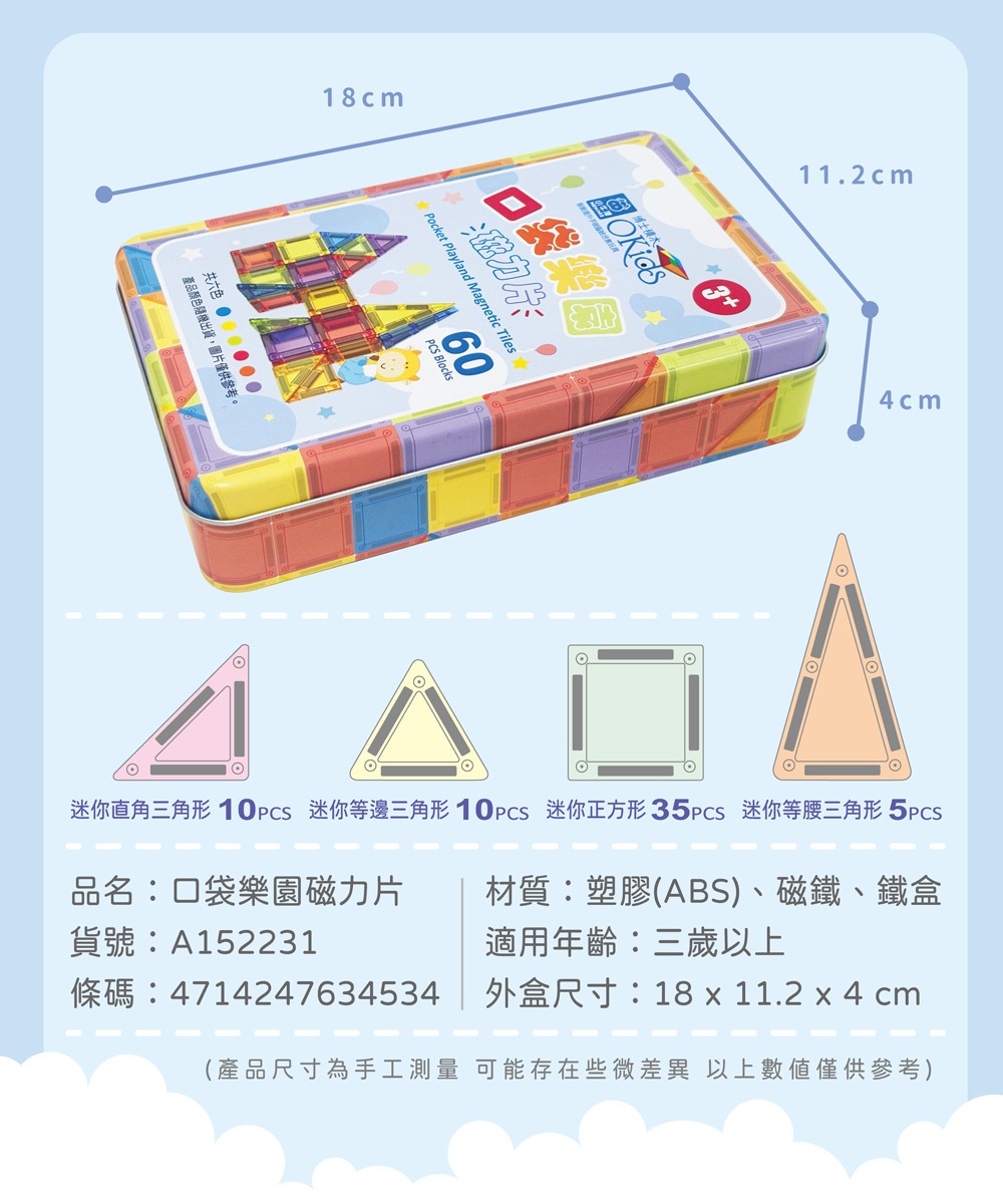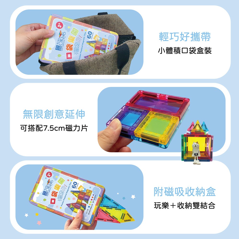 【小牛津】Okids博士積木-口袋樂園磁力片-60pcs(鐵盒裝/迷你磁力片/STEAM玩具)