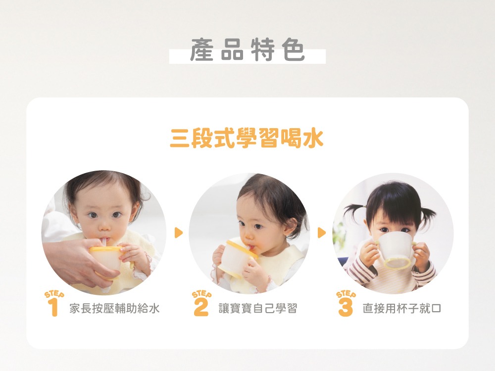 學習訓練杯可按壓PUSH出水,由大人從旁輔助,輕鬆學習吸管飲水