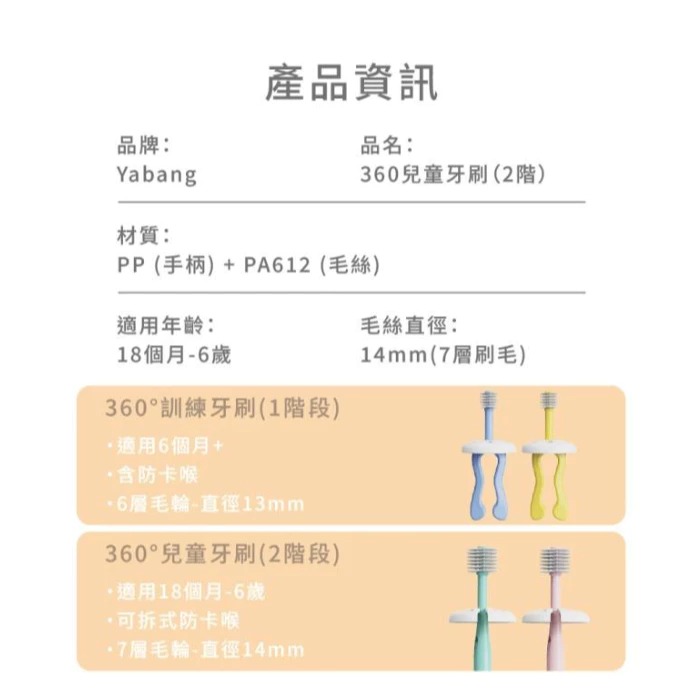Yabang 360 訓練牙刷 2階段 兒童牙刷 溫和清潔 刷牙練習 3歲+(綠)