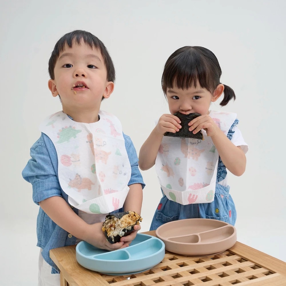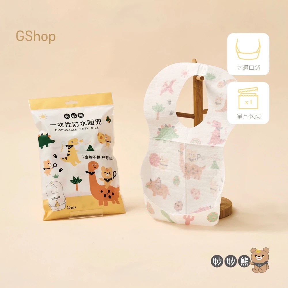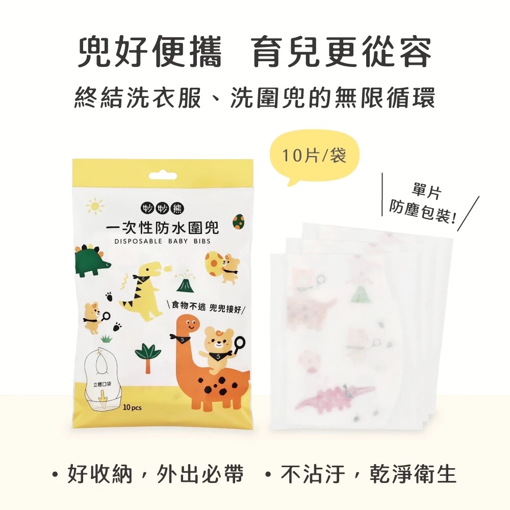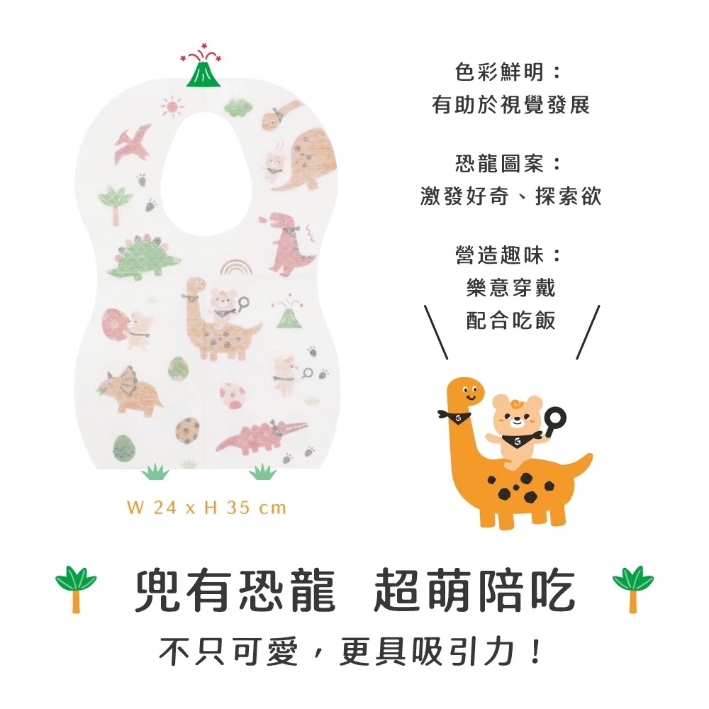 妙妙熊 一次性防水圍兜-恐龍村 (10入/袋) 拋棄式圍兜 紙圍兜 免洗圍兜