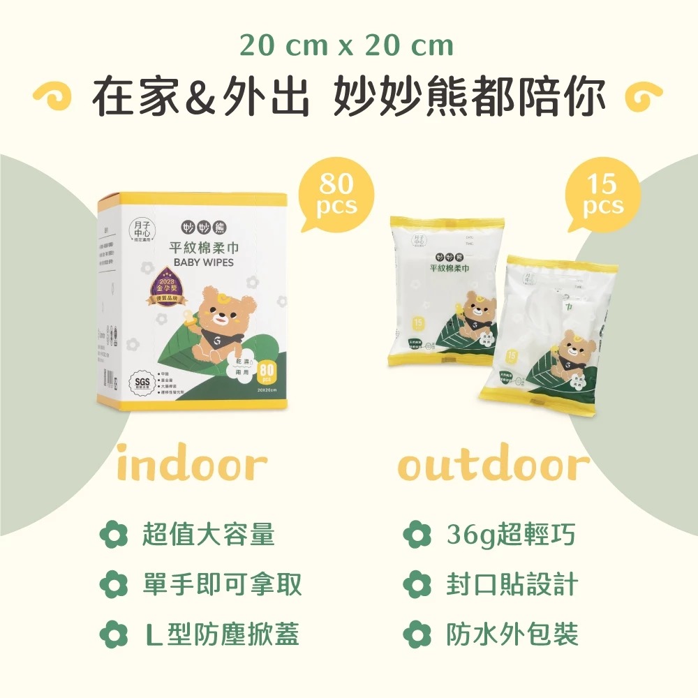 【單盒】妙妙熊 平紋棉柔巾-80張/盒