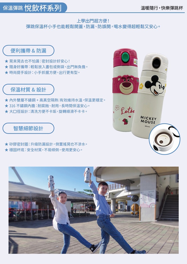 FORME Disney 迪士尼 正版授權不鏽鋼保溫 吸管彈跳杯 500ml(米奇-綠)
