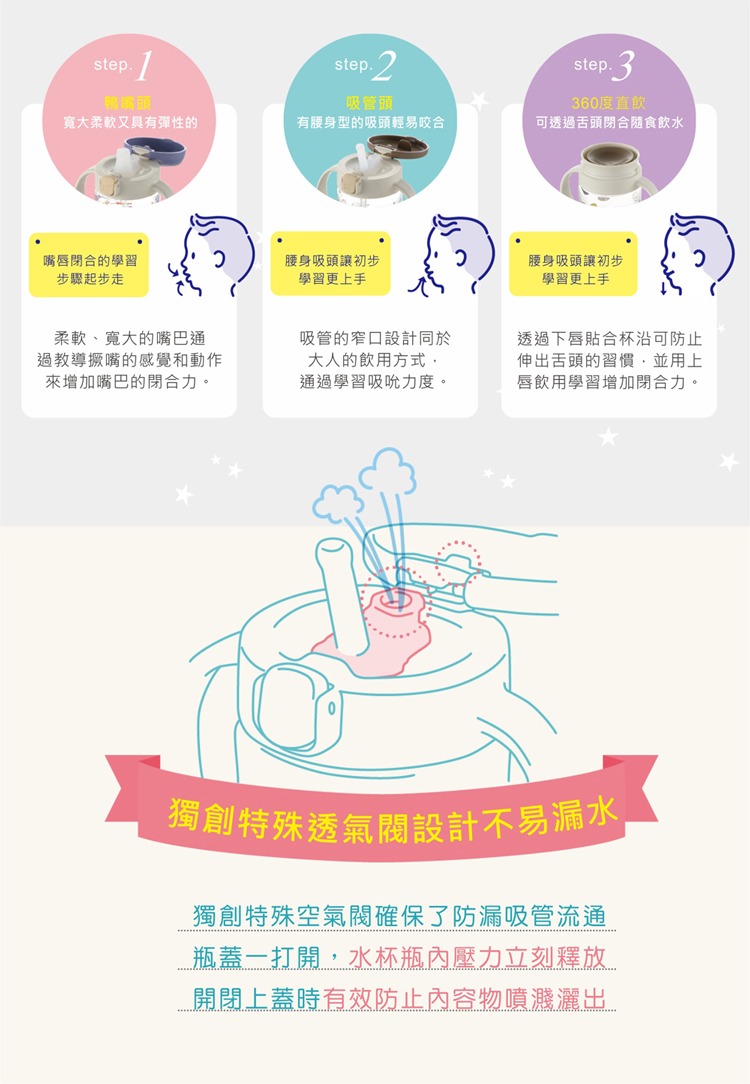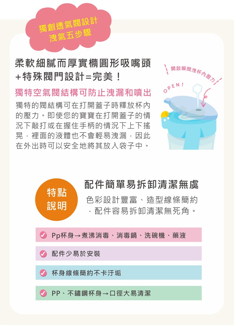 上蓋兩段式開啟,不易漏水