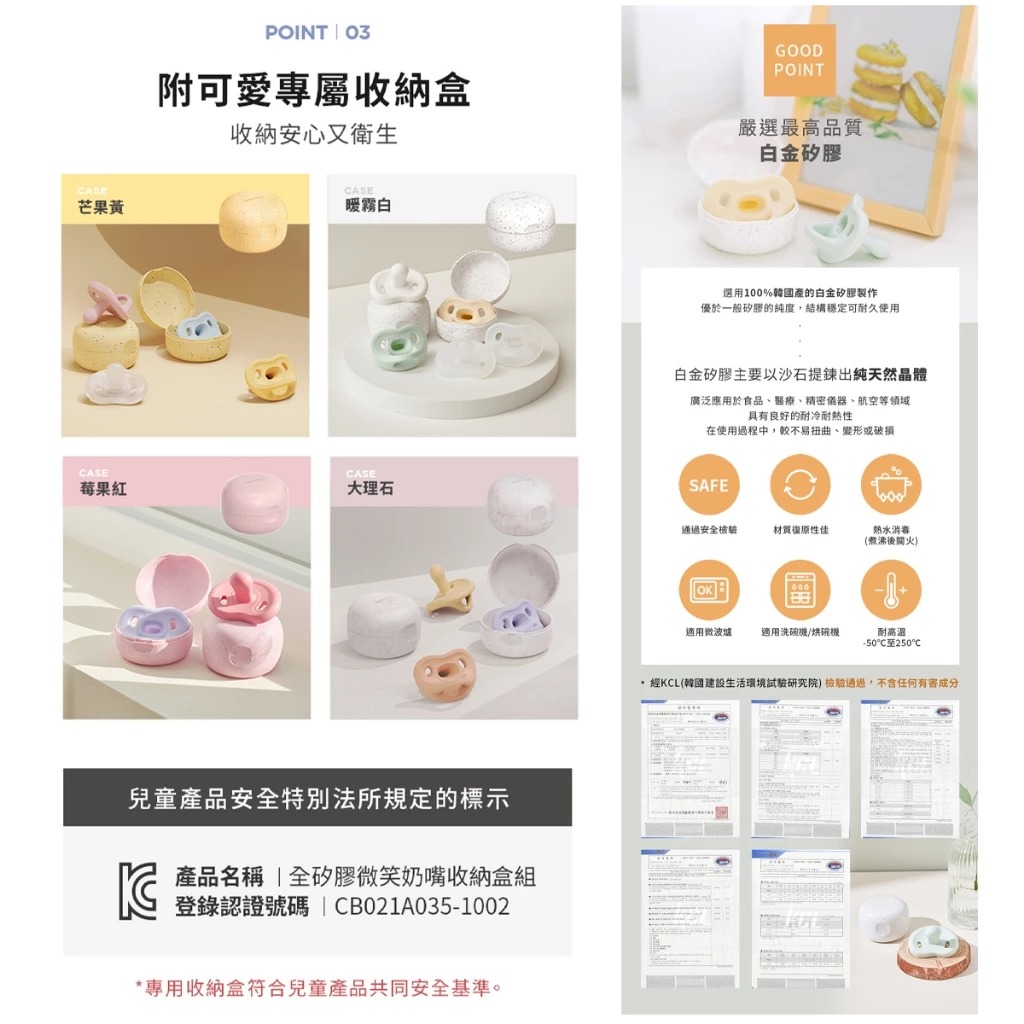 -品名:全矽膠微笑奶嘴收納盒組