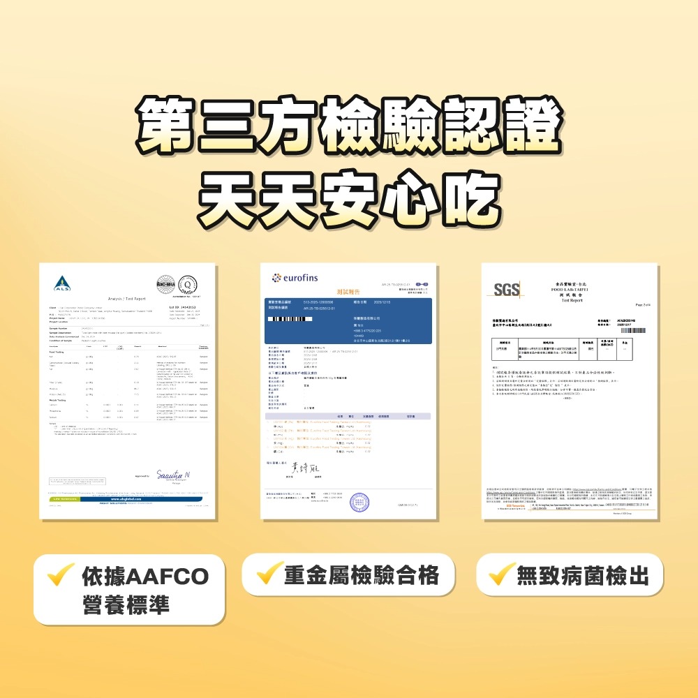 無膠,無穀,無不良添加物,依據AAFCO營養標準設計