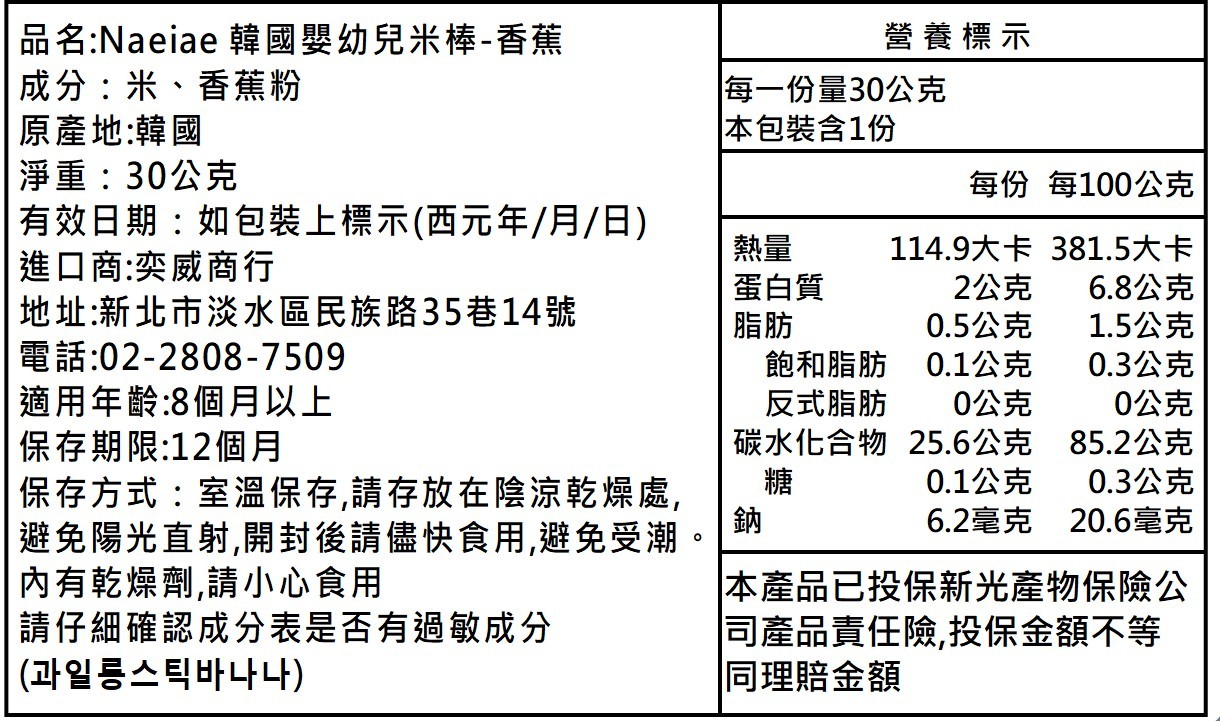 Naeiae 韓國嬰幼兒米棒-香蕉