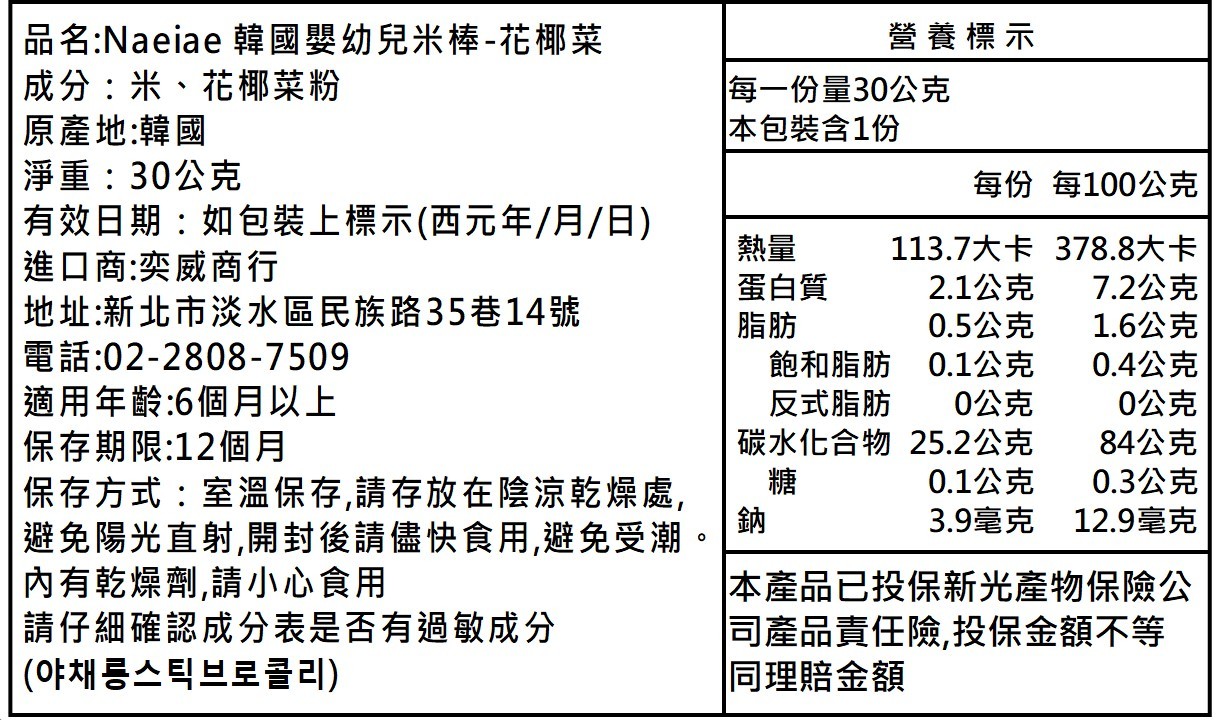 Naeiae 韓國嬰幼兒米棒-花椰菜