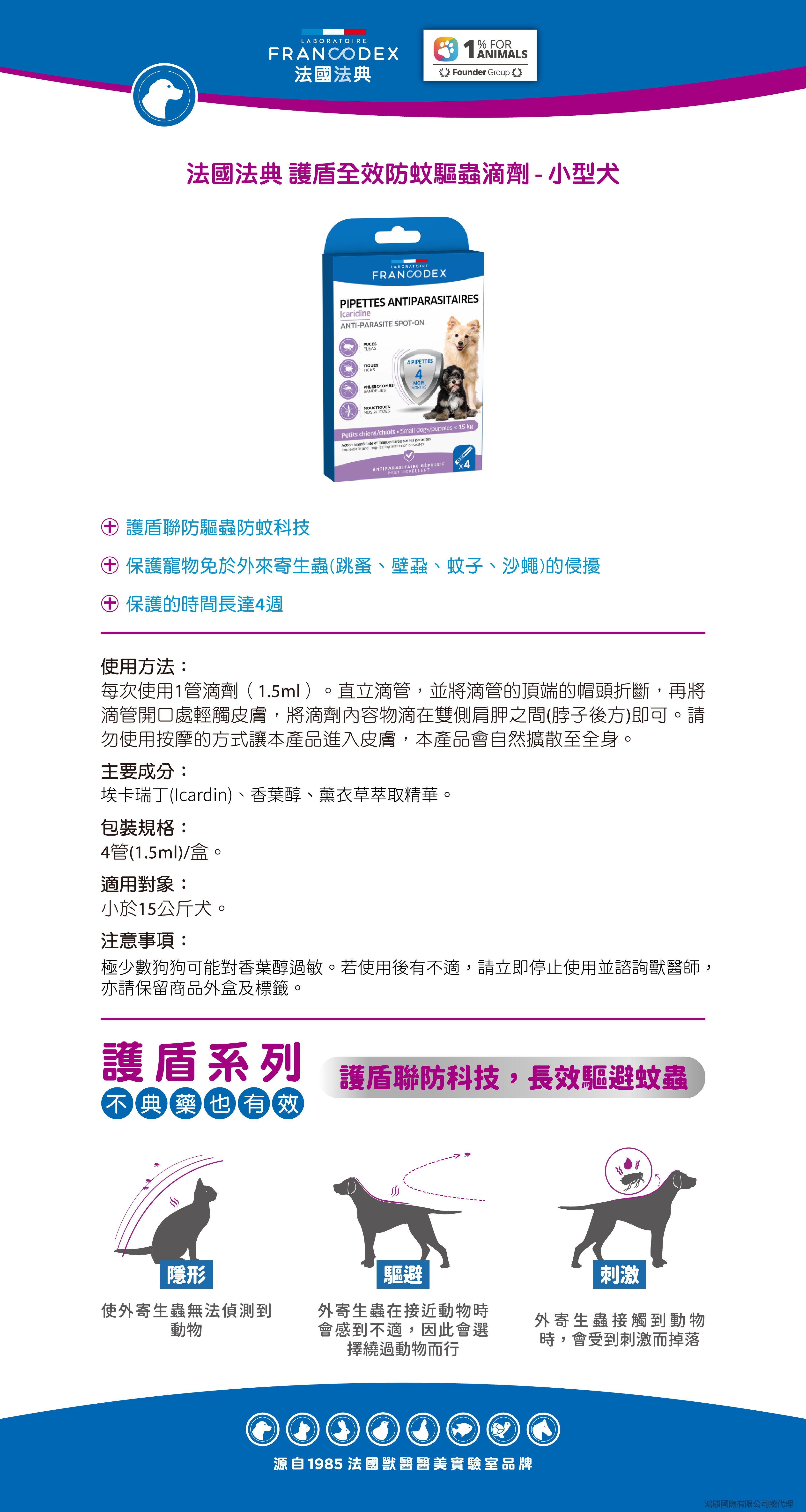 Francodex法國法典 護盾全效防蚊驅蟲滴劑-小型犬 15KG以下
