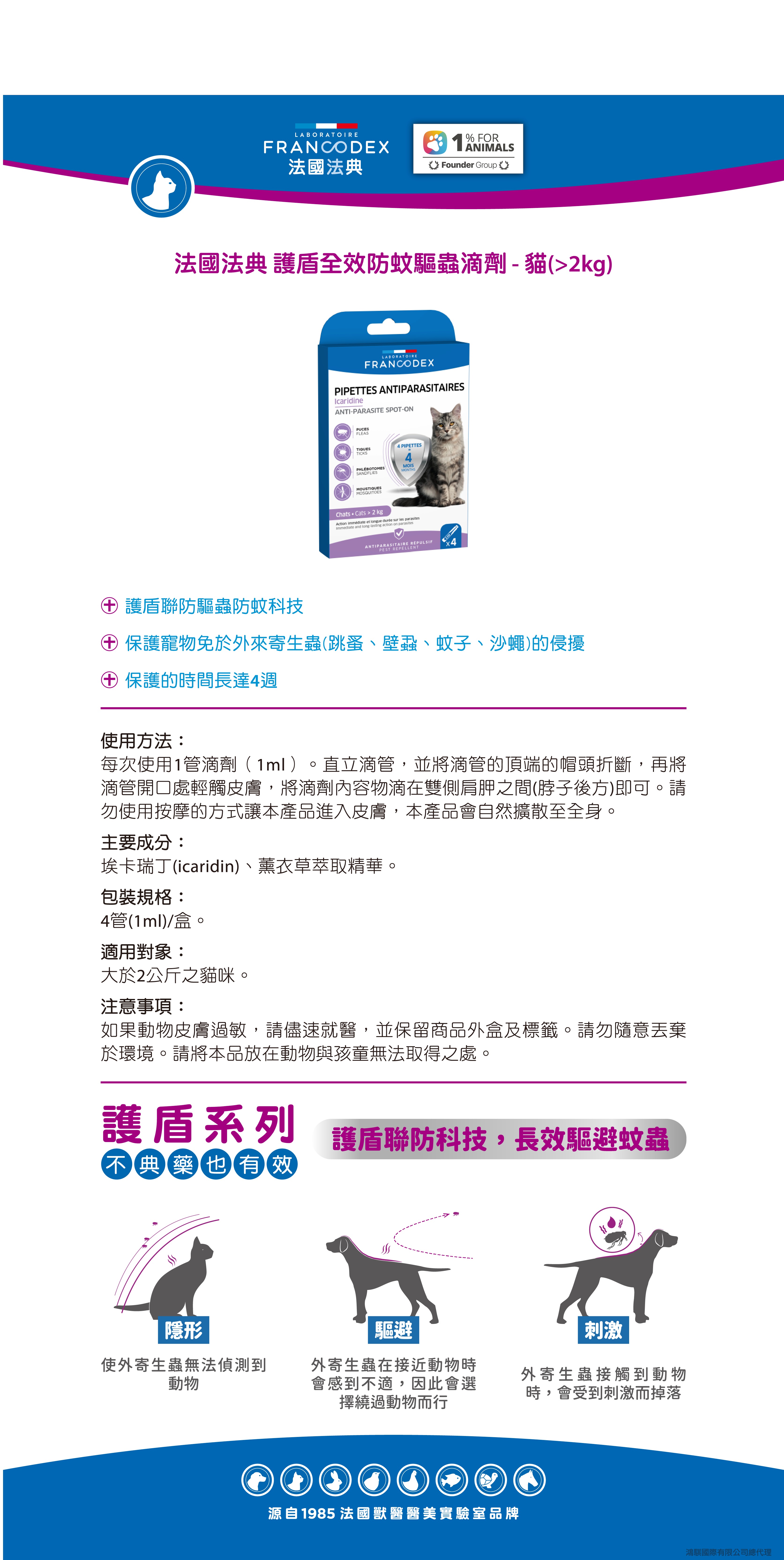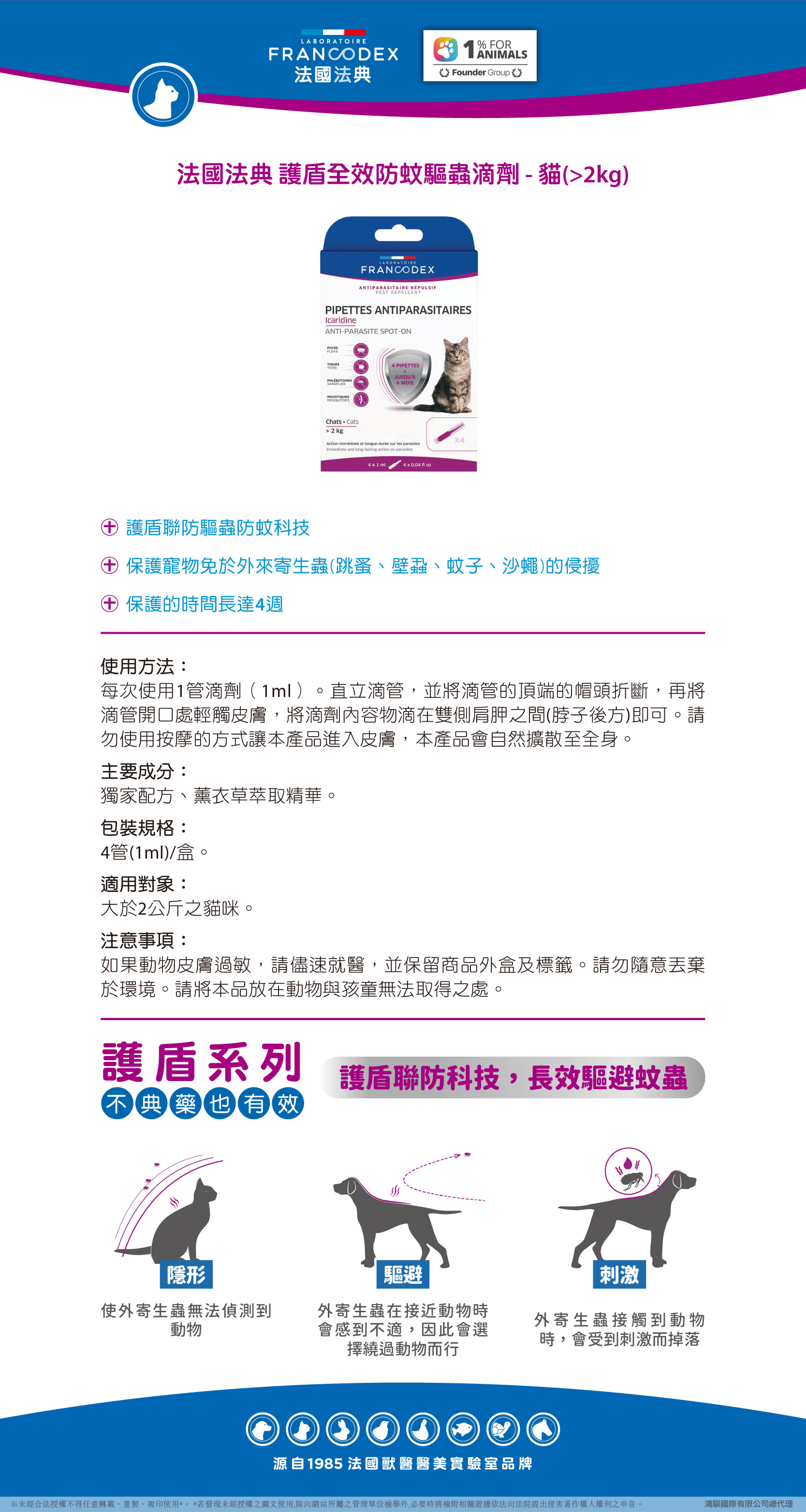 Francodex法國法典 護盾全效防蚊驅蟲滴劑-貓(>2kg)