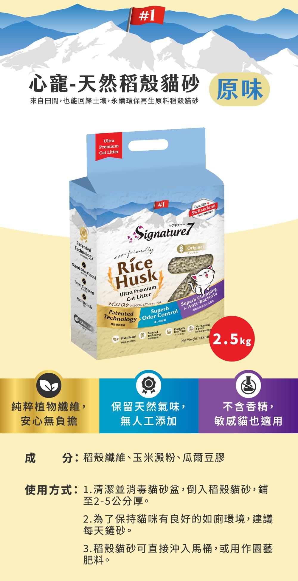 【箱購6入】心寵 天然稻殼貓砂 | 原味 2.5kg