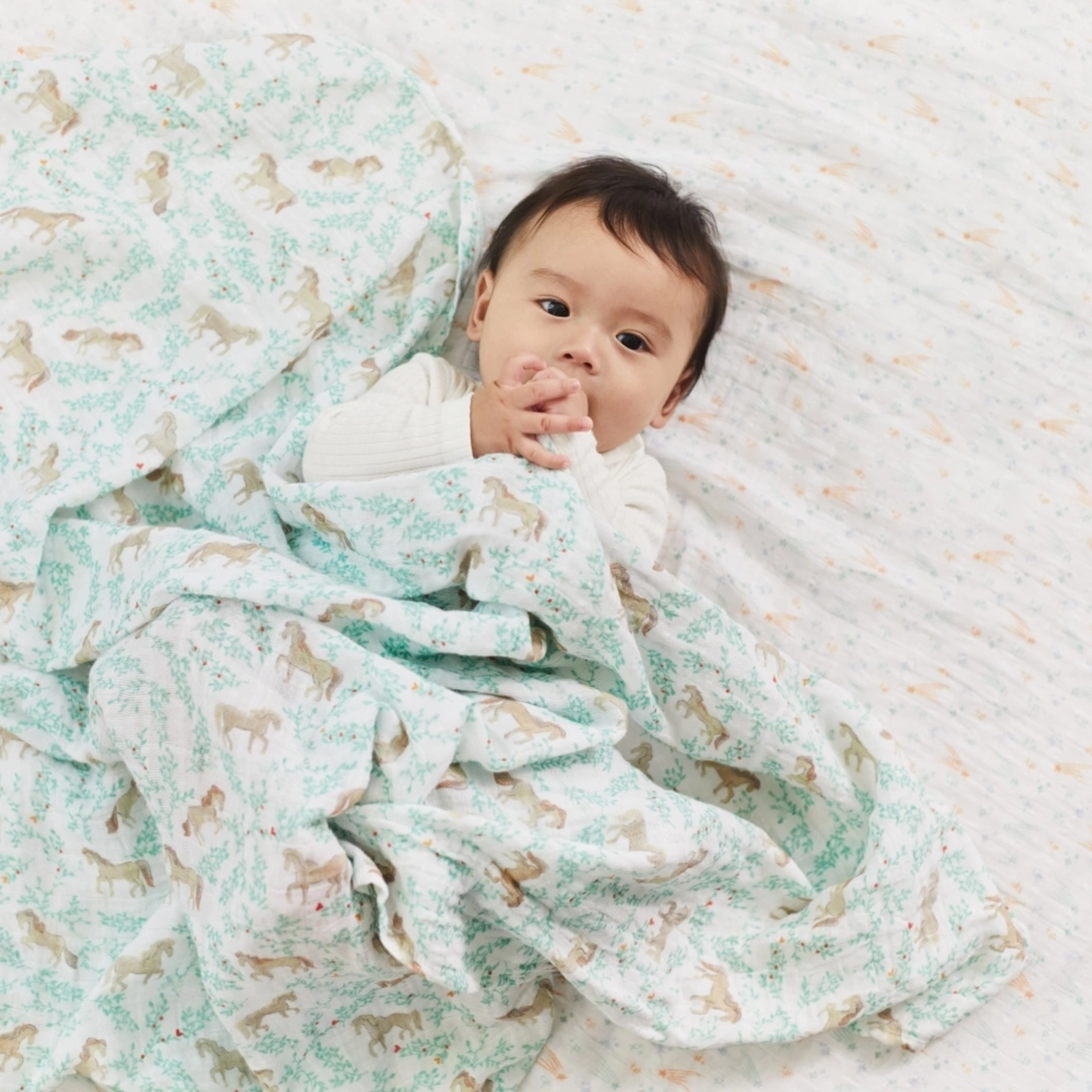 • 採用Muslin 100%細緻輕透紗布棉,運用開放的稀鬆編織法,減少嬰兒過熱窒息的風險。