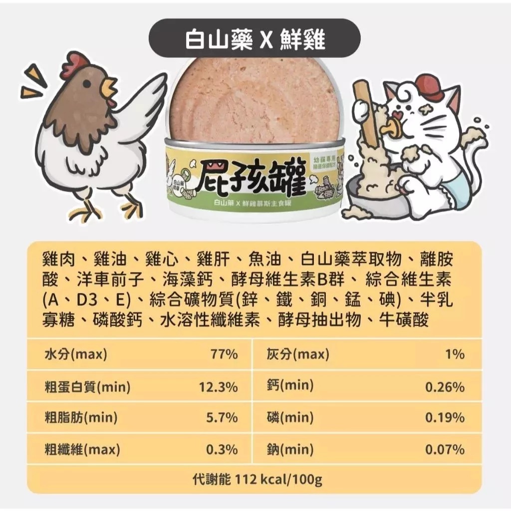 【箱購24罐】 陪心寵糧 屁孩幼貓『慕斯』主食罐80g系列 貓咪罐頭 濕食 主食罐 【白山藥+鮮雞80g】