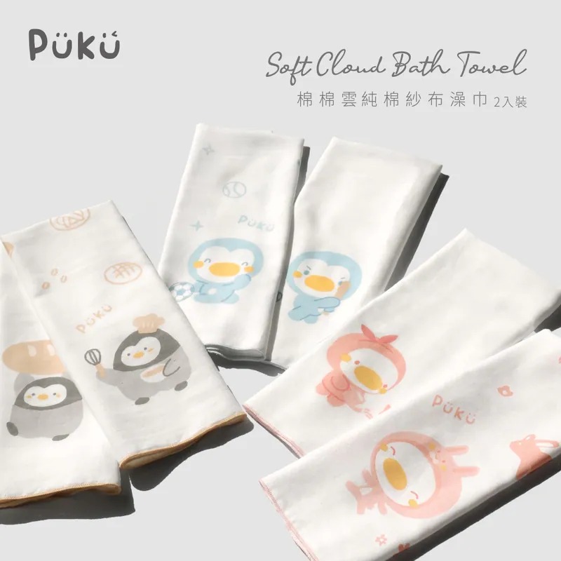 PUKU 藍色企鵝 SoftCloud棉棉雲紗布澡巾2入-(米米)