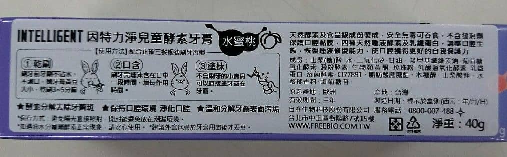 Intelligent因特力淨兒童酵素牙膏 40g(草莓/葡萄/水蜜桃)