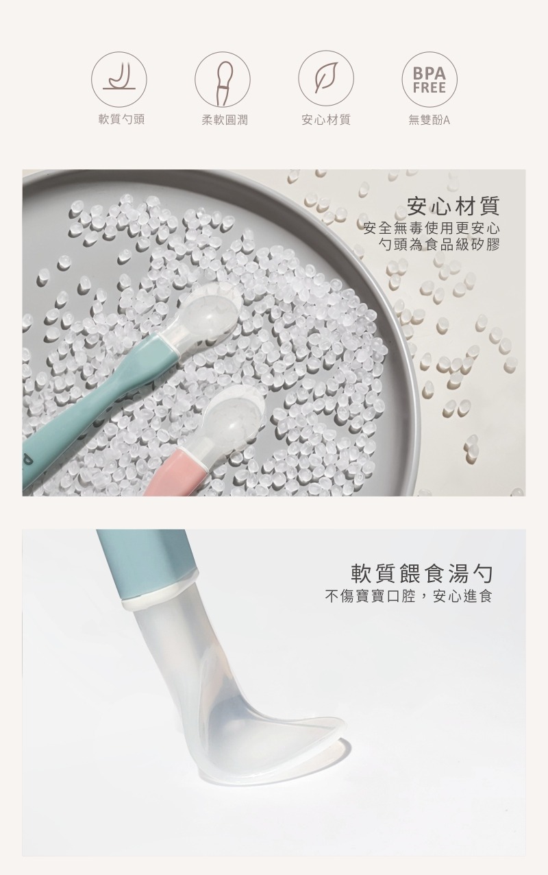 商品材質:握柄-PP。湯匙-矽膠。