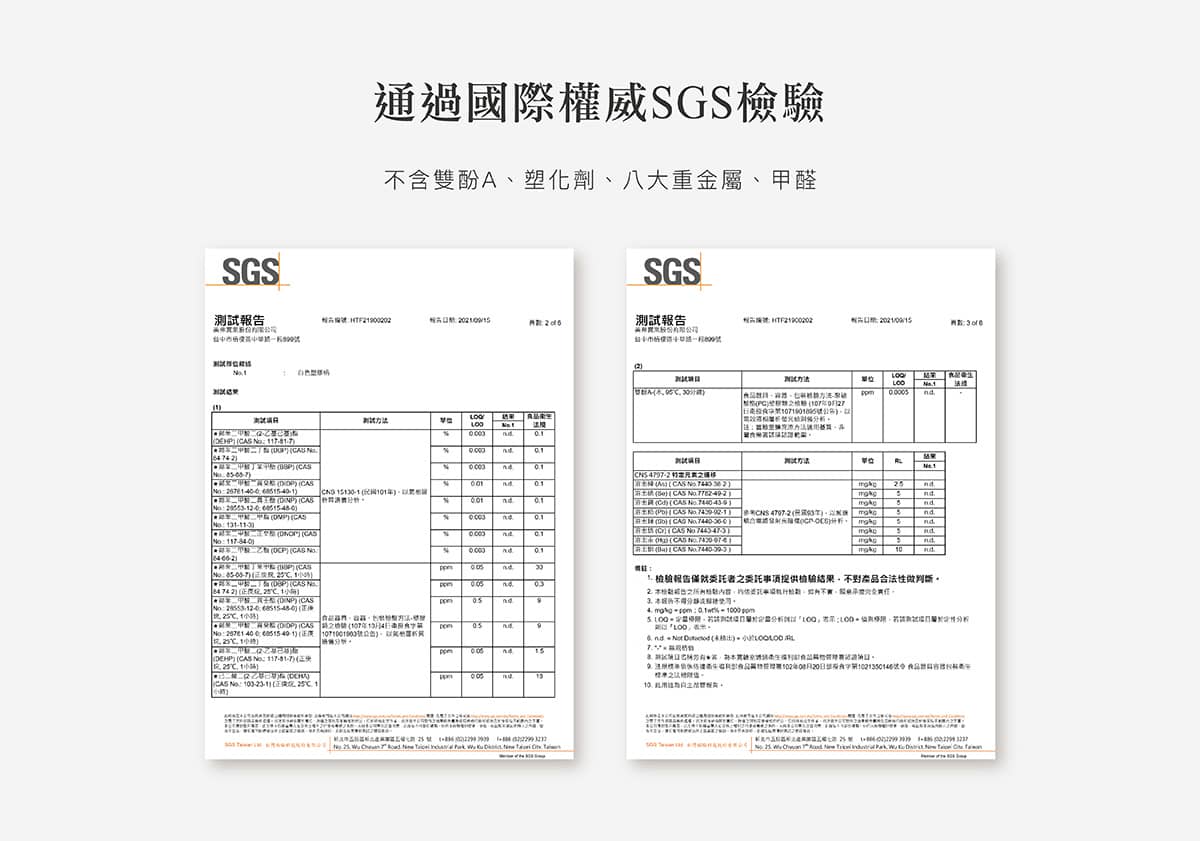 通過國際權威SGS檢驗,不含雙酚A、塑化劑。