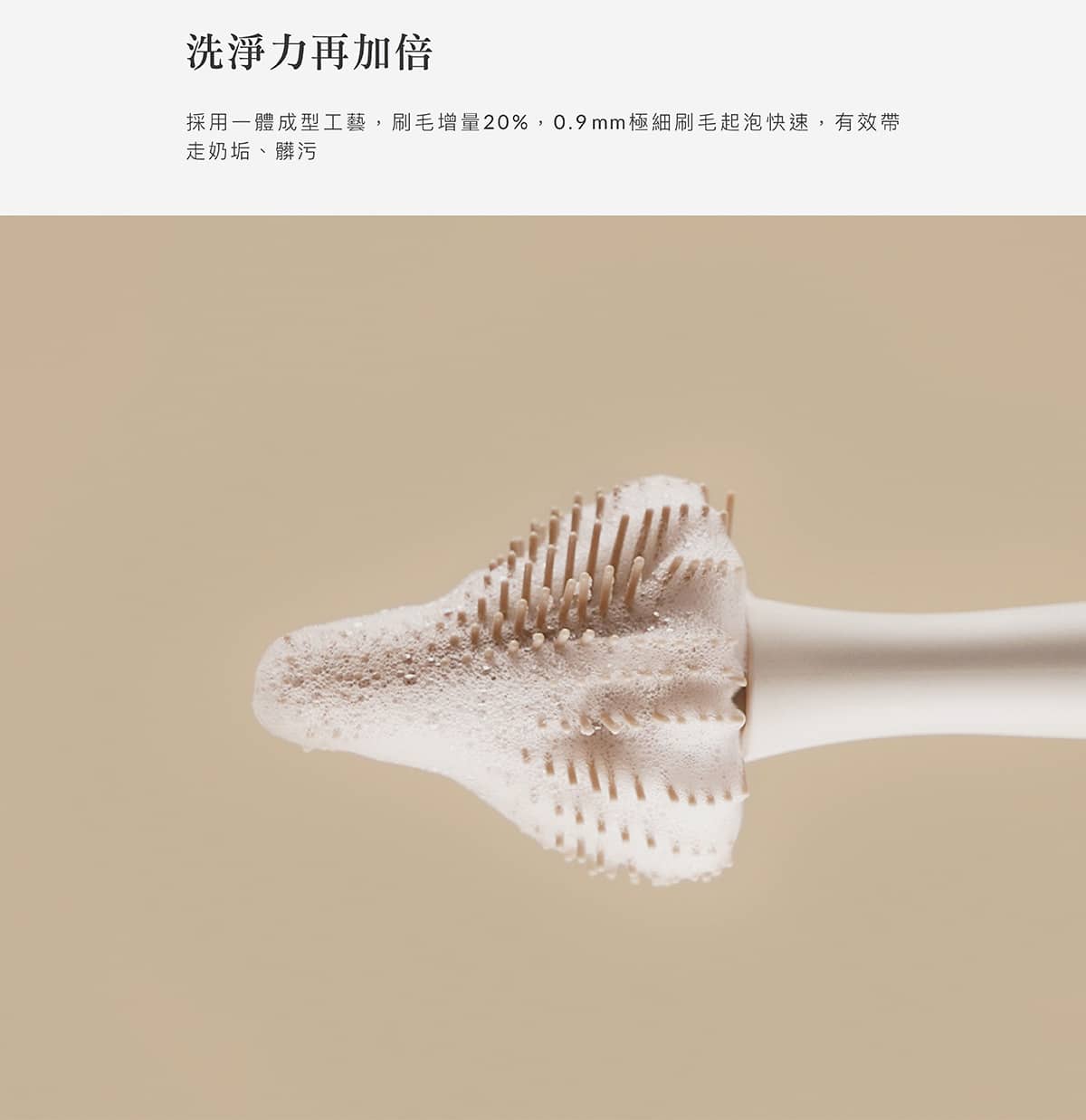 刷毛增量20%!快速起泡,洗淨效果加倍,有效帶走奶垢、髒污。