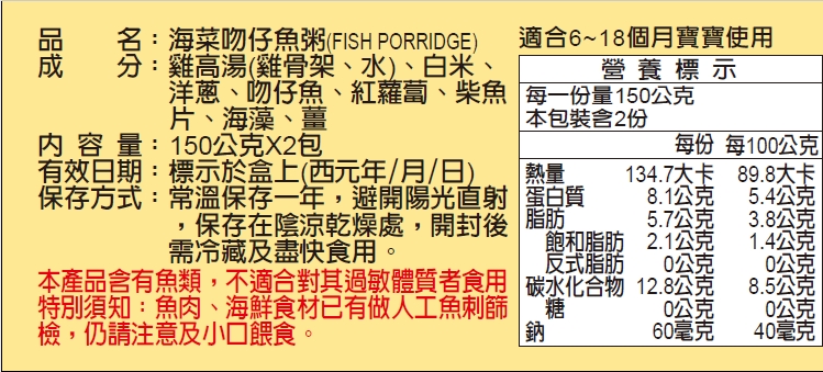 郭老師 常溫寶寶粥-海菜吻仔魚粥(副食品)2入/1盒 93981