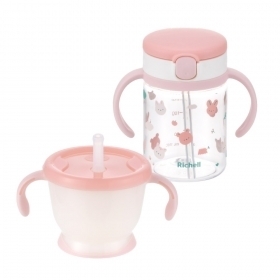 Richell Aqulea 第5代 學習水杯組合150ml+200m(粉兔森林)20692