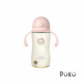 PUKU藍色企鵝 飽飽歐蕾PPSU寬口滑蓋水杯330ml(霧粉)